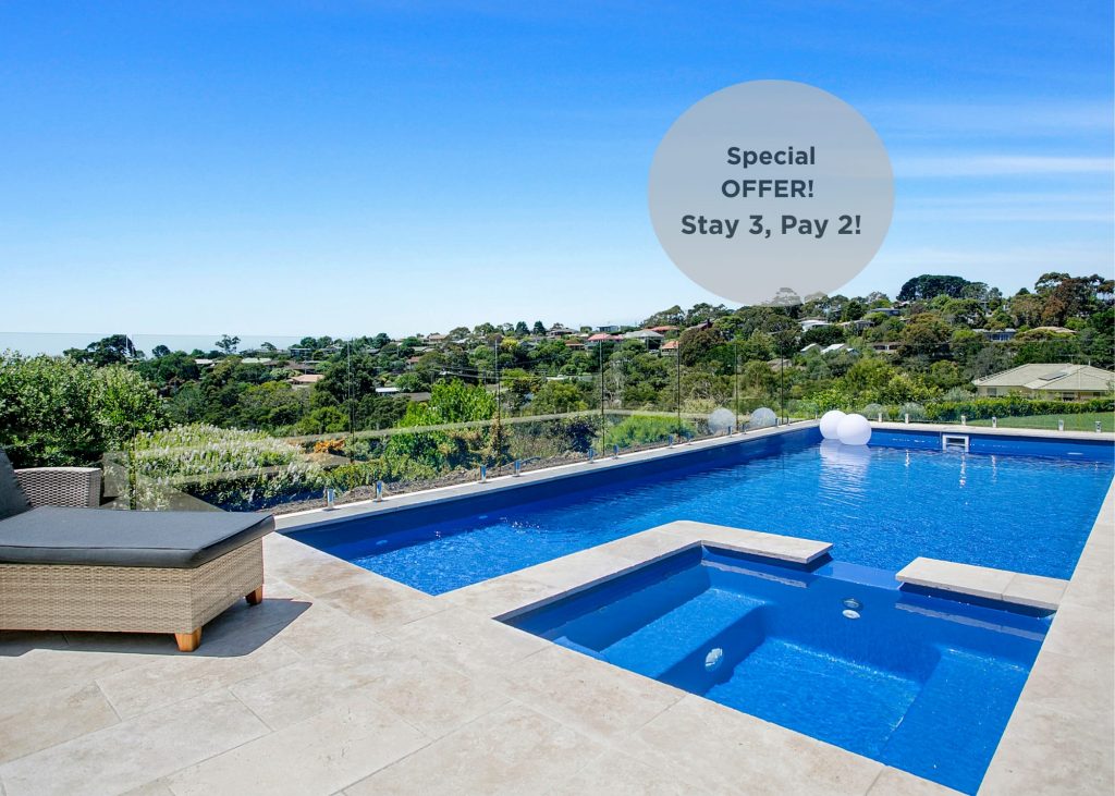 Absolutely beautiful property with stunning views out over the bay. The property was immaculately presented and well equipped for our group of 3 couples. The pool and spa were a welcome treat on a beautiful 30c weekend, and the view down through the valley and out over the bay was breathtaking as some storms rolled over late in the day. We’d definitely recommend this property for similar sized groups, and would certainly consider staying again.