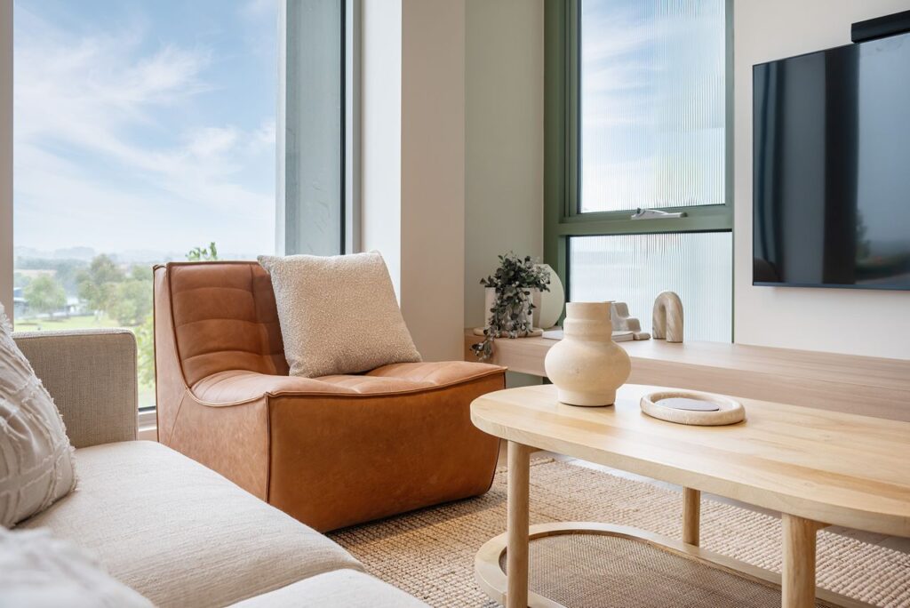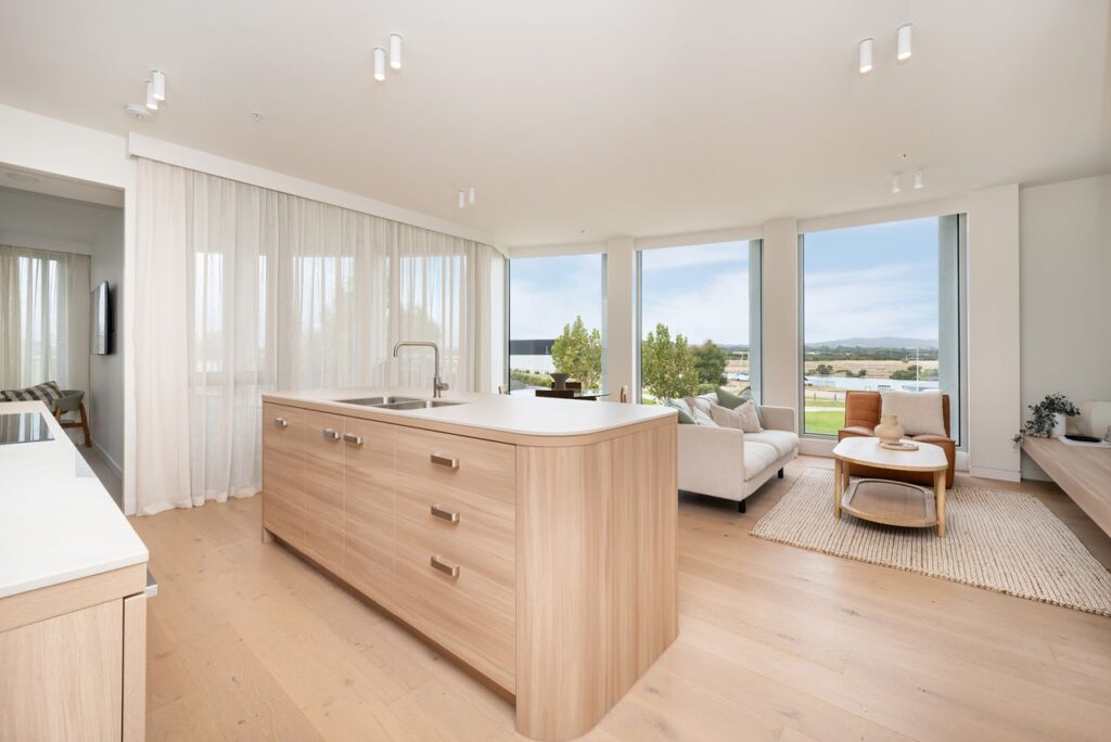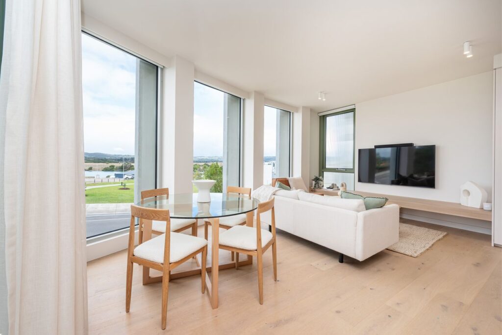 Set against stunning views of Mount Martha, Red Hill, and the glistening marina, the apartment features open, sunlit living spaces with high-end finishes and sustainable touches throughout. Enjoy the calming ambience of coastal oak timber floors, double-glazed windows, and natural light that fills every corner.